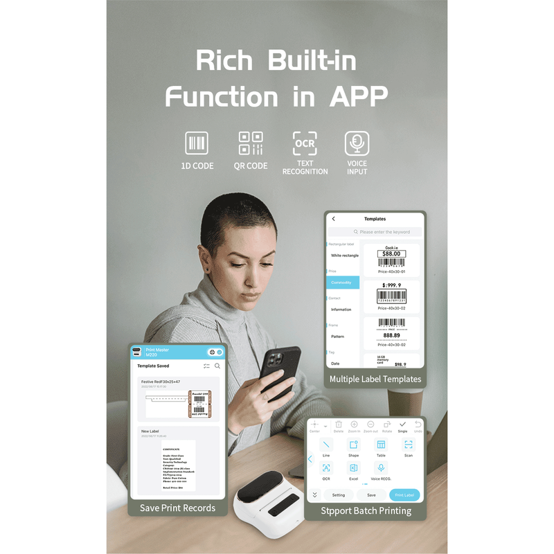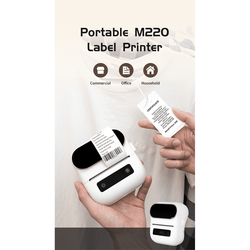Aimo M220 bluetooth límmiðaprentari fyrir Windows, Mac, iOS og Android (hvítur)