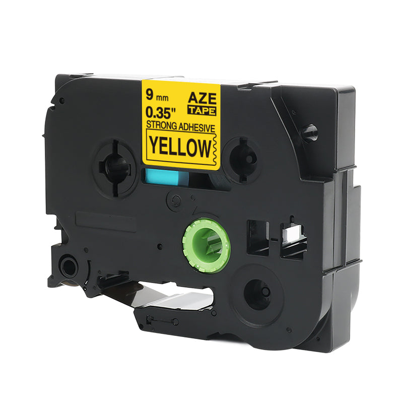 Svart á gulu - Sterkt lím, 9mm, 8m