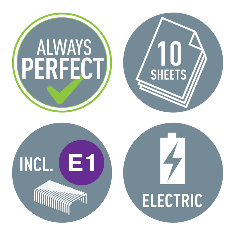 Easy one hand operation, ideal for frequent use. In striking WOW colours that let your personality shine through. Battery powered for convenient, on-the-move use. Leitz Electric staples E1 ensure perfect stapling every time. - Staples up to 10 sheets of paper (80 gsm) - Easy one hand operation - Stylish addition to your desk and great for use on-the-move thanks to battery power source (4x AAA batteries, not included) - Give your workplace or your home the WOW factor with this range of products in striking and stylish colours - Diagonal stapling possible - Use with E1 staples for jam free performance - 3 year guarantee when using Leitz staples and GS safety testedHeftari, WOW battery 10 blaða hvítur