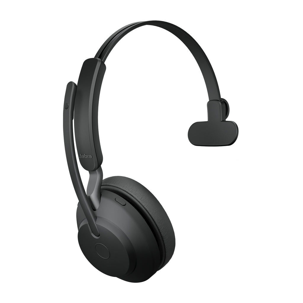 Jabra Evolve2 65 USB-A UC Mono with Charging Stand - Black. Product type: Headset. Connectivity technology: Wireless, Bluetooth. Recommended usage: Office/Call center. Headphone frequency: 20 - 20000 Hz. Wireless range: 30 m. Cable length: 1.2 m. Weight: 99.2 g. Product colour: Black