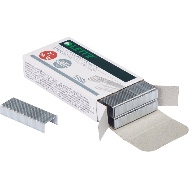 No. 10 strong steel staples. Use with a Leitz stapler for optimum performance. - For stapling up to 10 sheets (80 gsm) - Each box contains 1,000 staples - Premium quality, recommended for use with all stapler brands. - 4 mm leg length - Up to 10 year guarantee on Leitz staplers when used with Leitz staplesHefti Nr. 10 (1000)