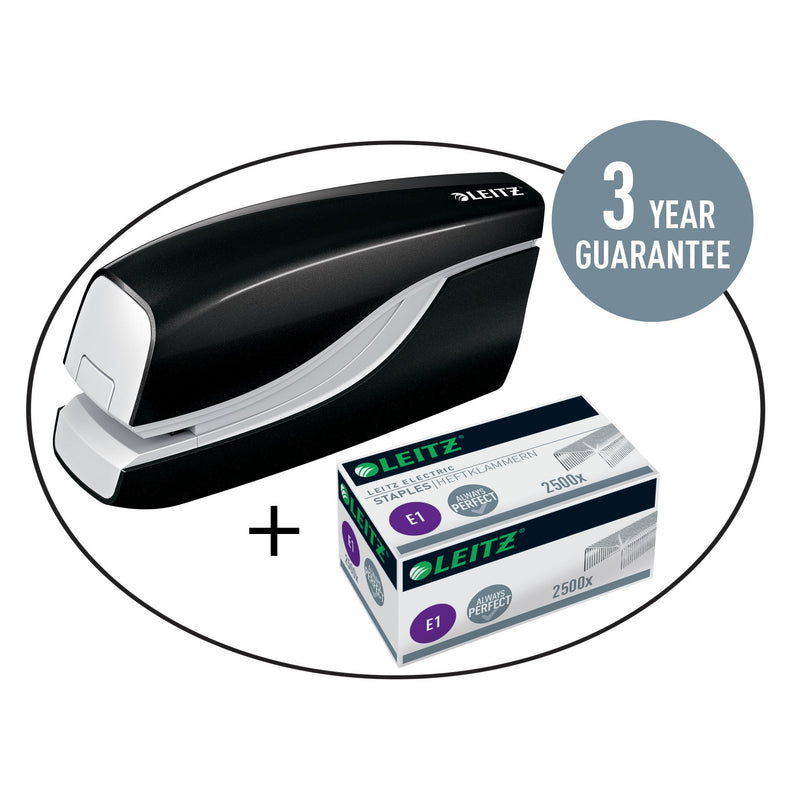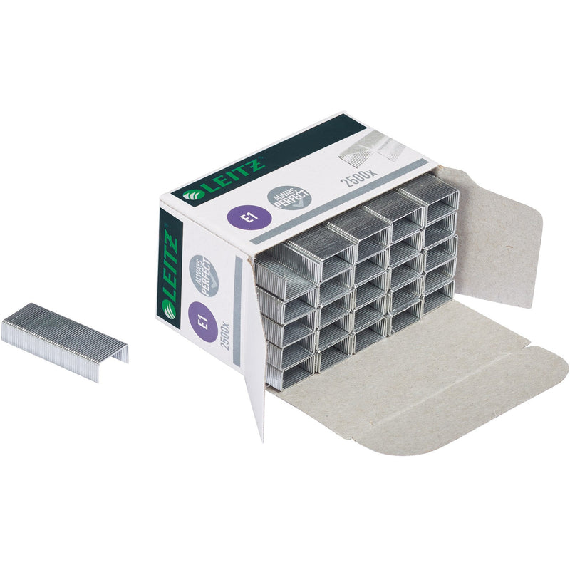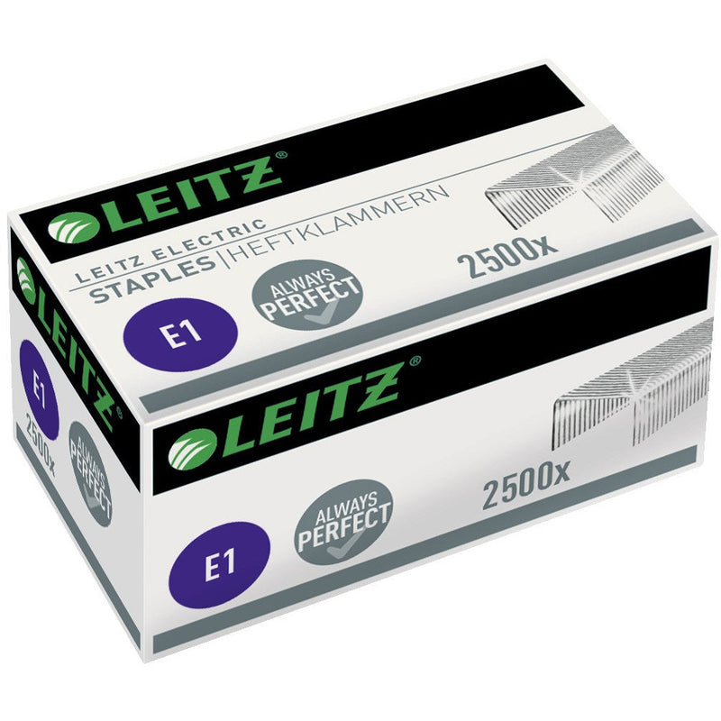 Made of extra strong steel. Optimum performance when used with Leitz 5532 electric stapler. - For stapling up to 10 sheets (80 gsm) - Each box contains 2,500 staples - Premium quality, recommended for Leitz 5532 electric stapler - 4 mm leg length - 3 year guarantee on Leitz 5532 electric stapler when used with Leitz e1 staplesHefti nr. 10 E1 fyrir rafmagnsheftara (2500)