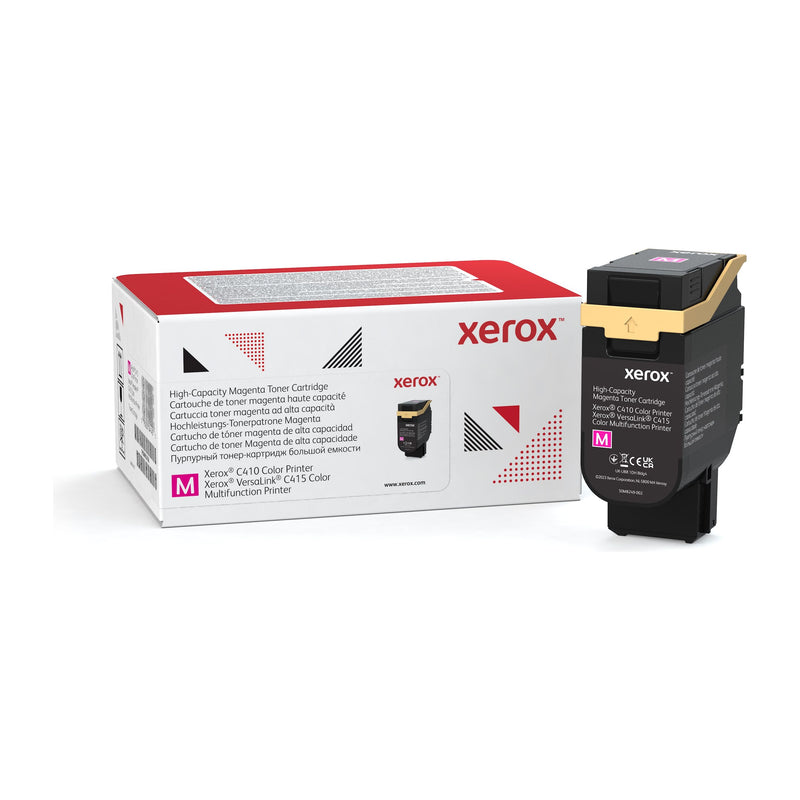 Xerox Genuine Xerox® C410 Color Printer/VersaLink® C415 Color Multifunction Printer Magenta High capacity Toner Cartridge (7000 Pages) - 006R04687 is specially formulated and tested to provide the best image quality and most reliable printing you can count on page after page. Xerox Genuine Supplies and Xerox equipment are made for each other. Accept no imitations. Compatible toners may risk breakdown of Xerox printers and result in poor print quality and weak colours. With over 75 years' experience, Genuine Xerox Supplies are something you can rely on.